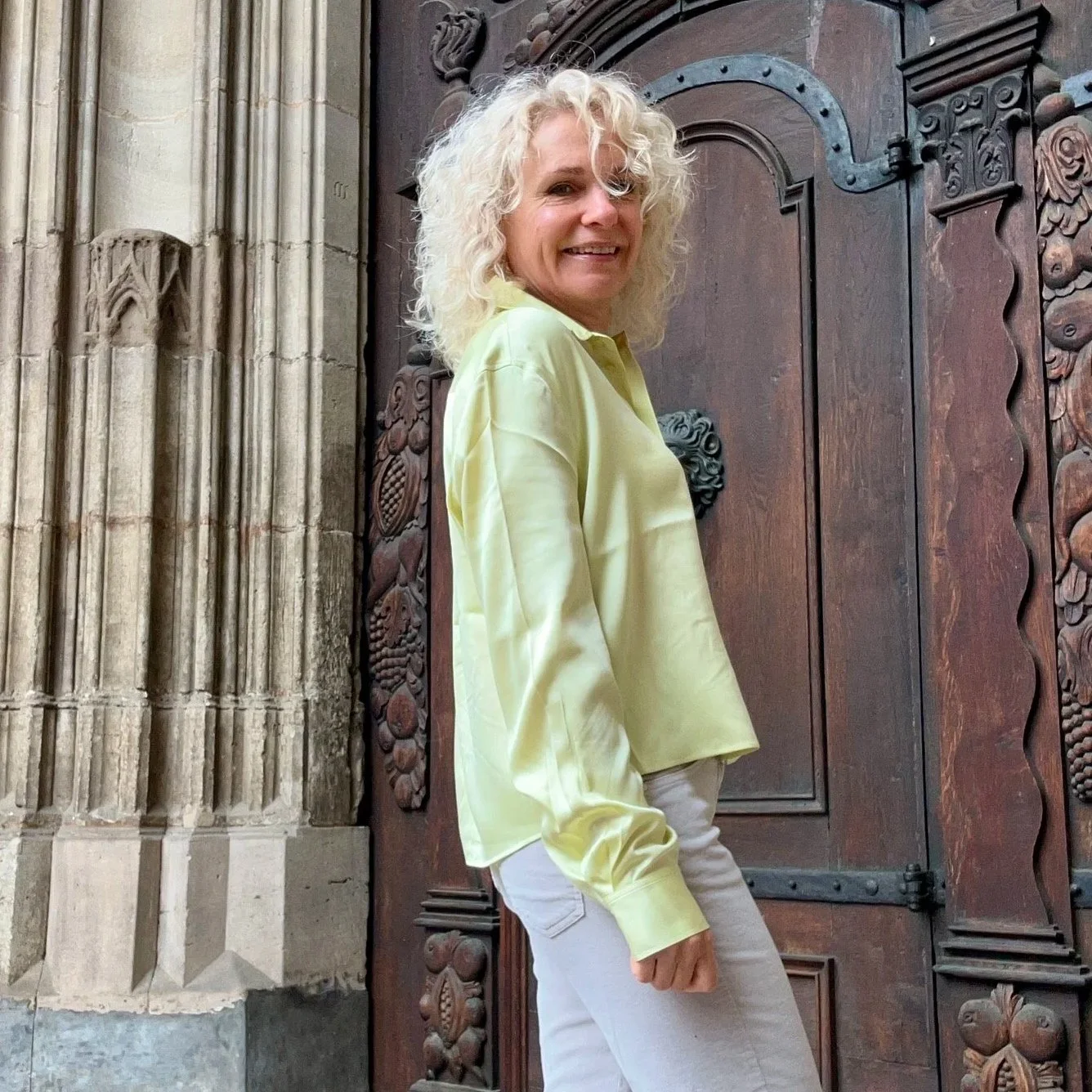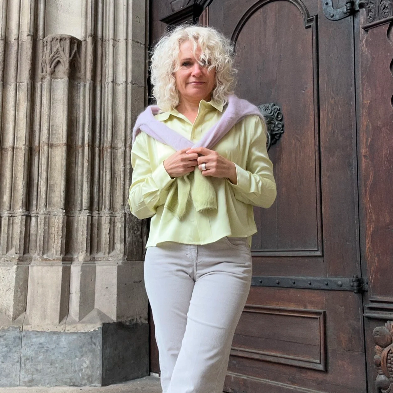 Diese gerade geschnittene Bluse ist mit einer verspielten Stickerei aus Raw-Edge-Tape mit Blumenmuster verziert. Die Bluse hat Perlmuttknöpfe und Puffärmel. Waschhinweis: Wir empfehlen, dieses Piece in einem Wäschesack zu waschen.
