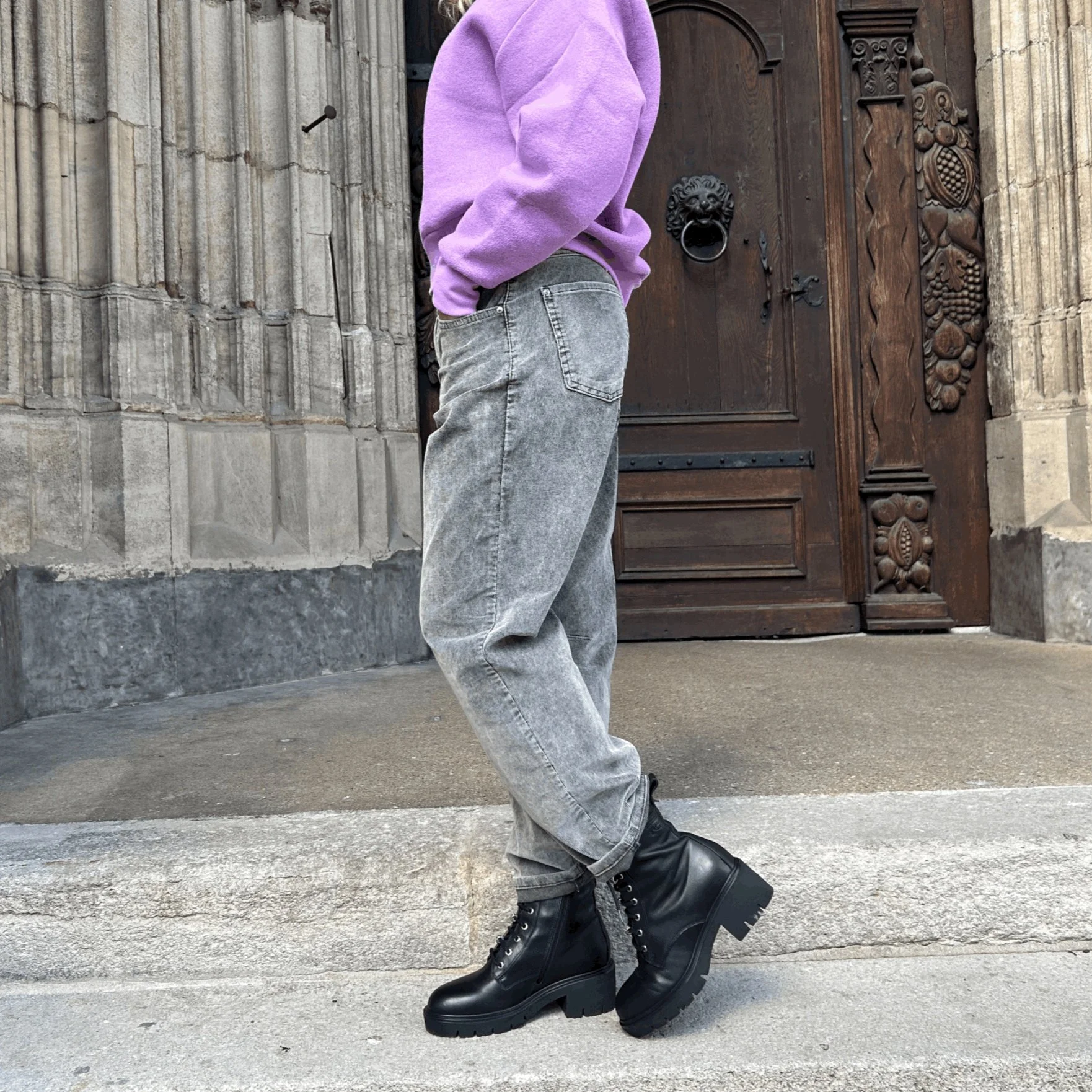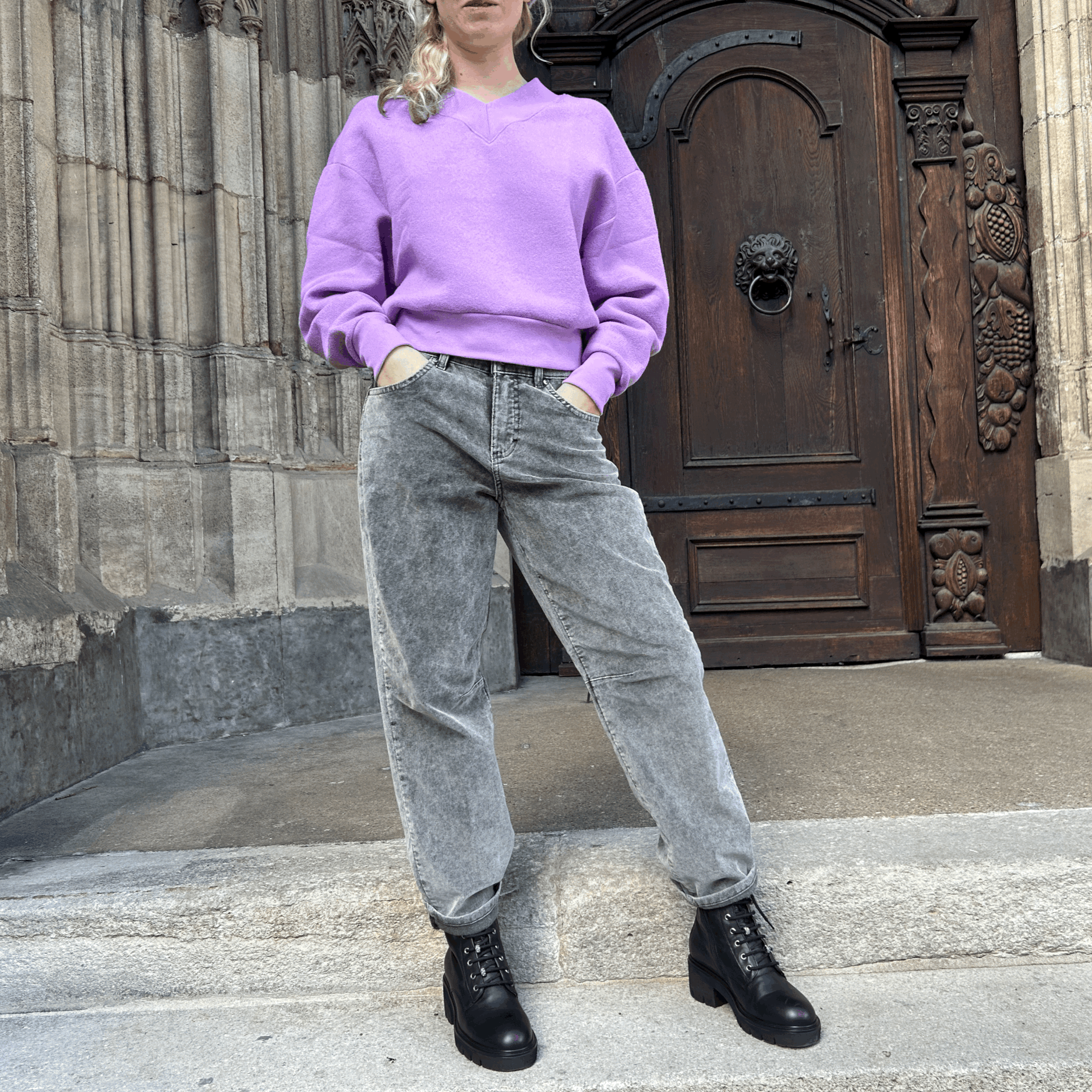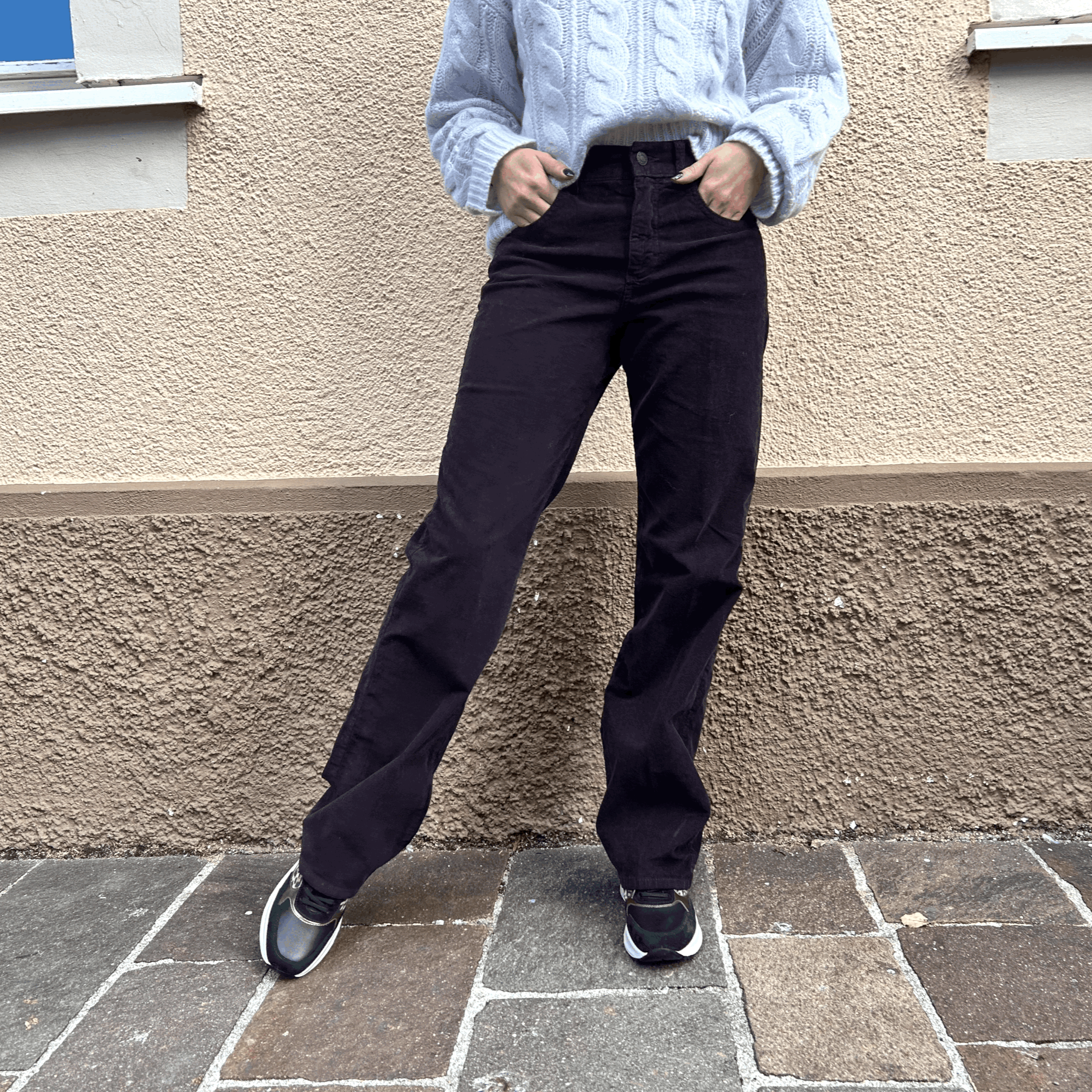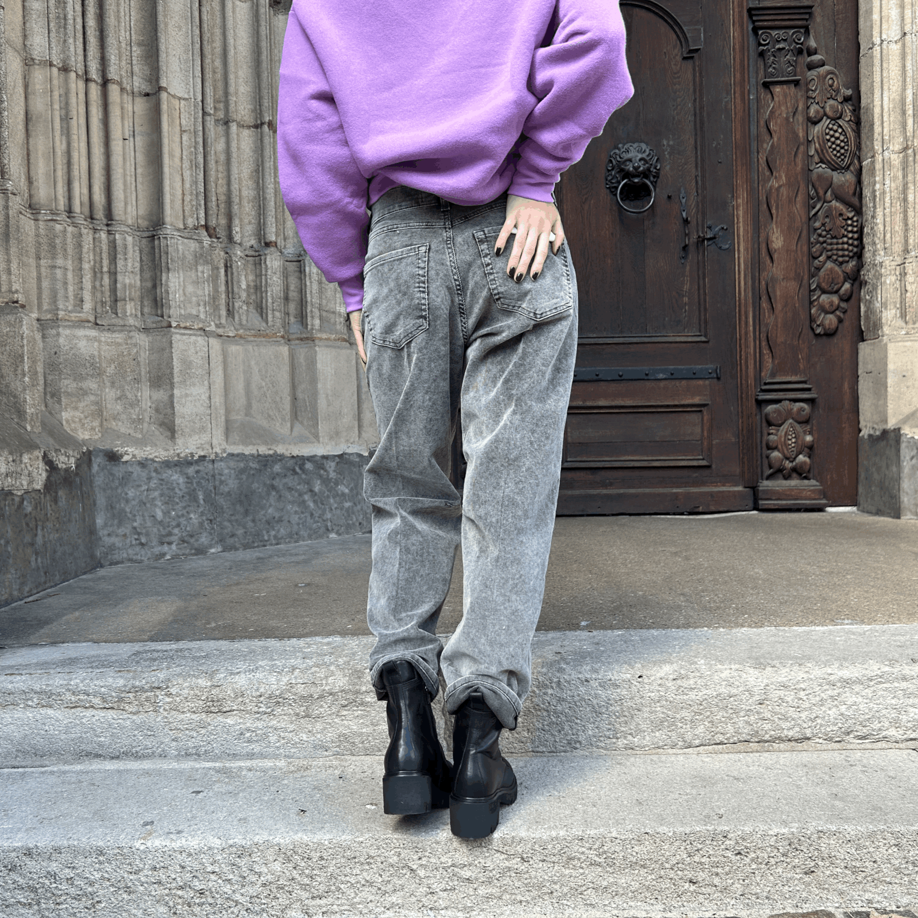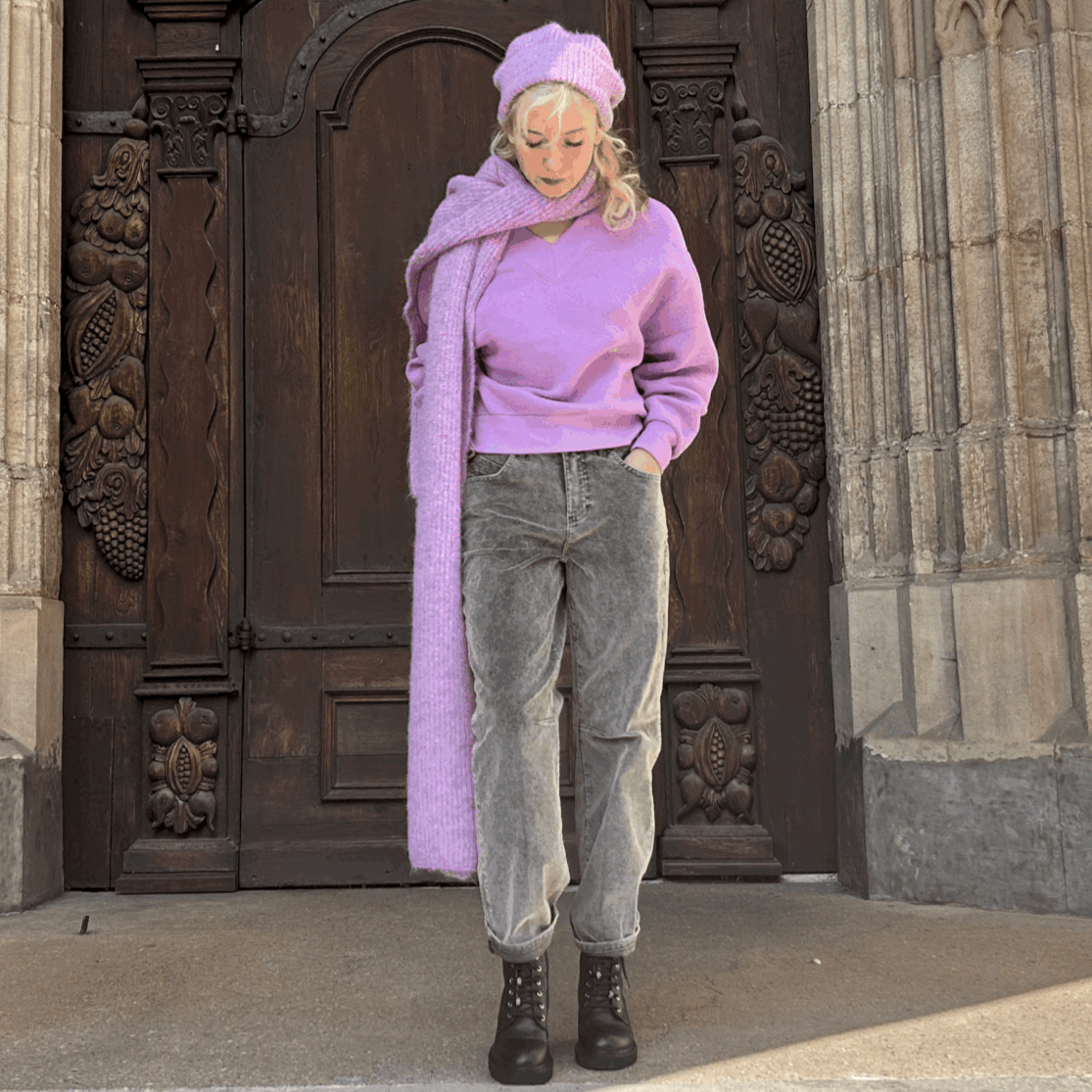 Jeans mit weitem Bein aus angenehmem Stretch-Denim mit Workwear-Taschen. Die Hose hat eine Mid-Waist und liegt eng an der Hüfte an.