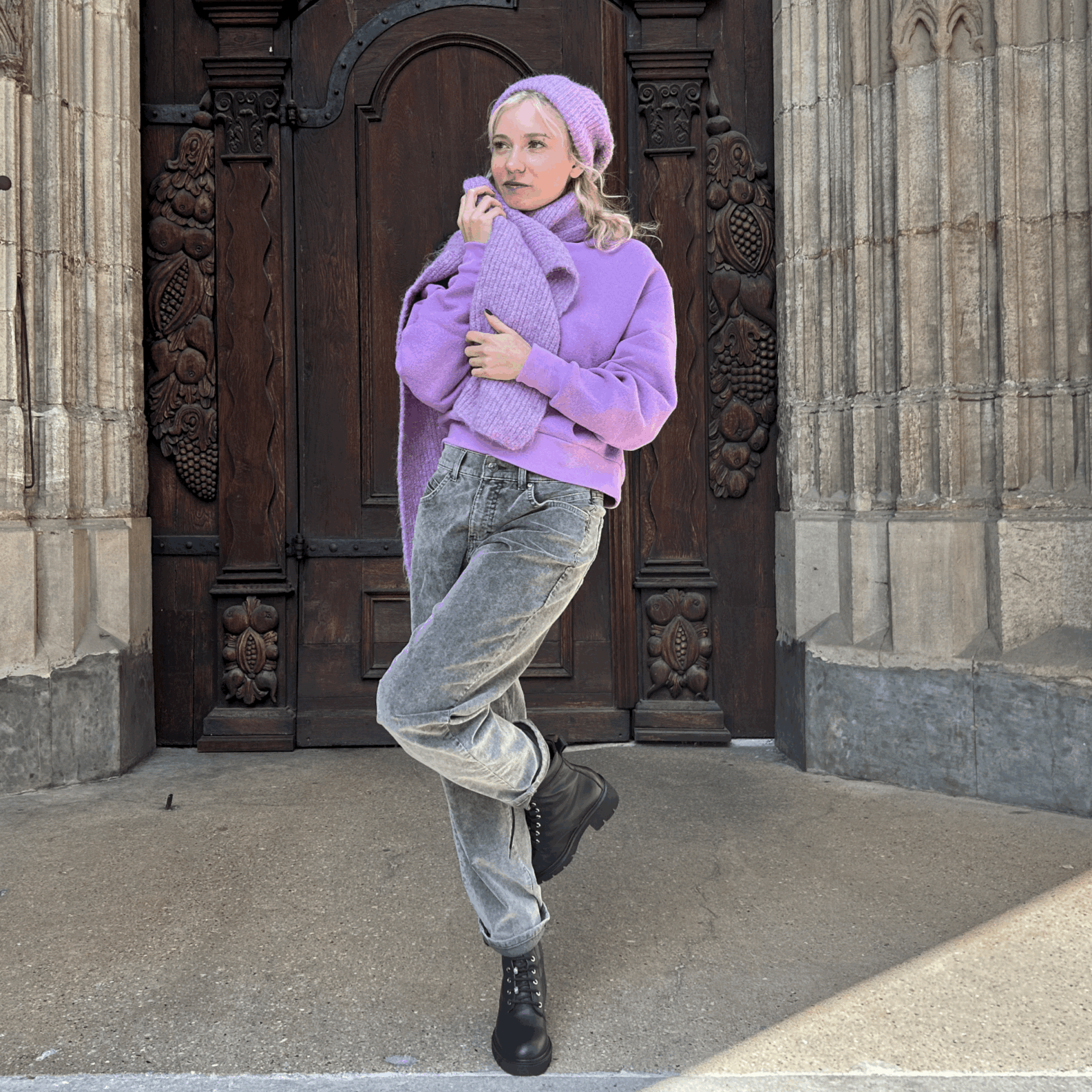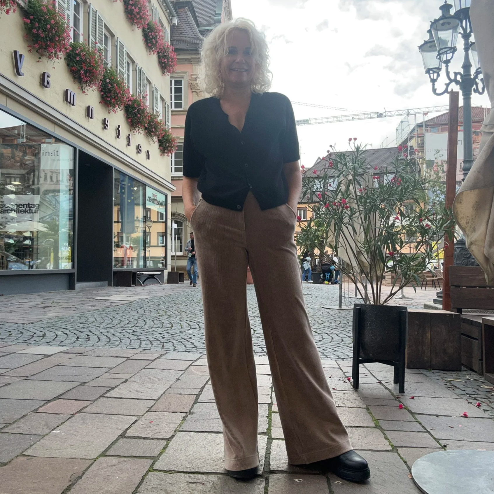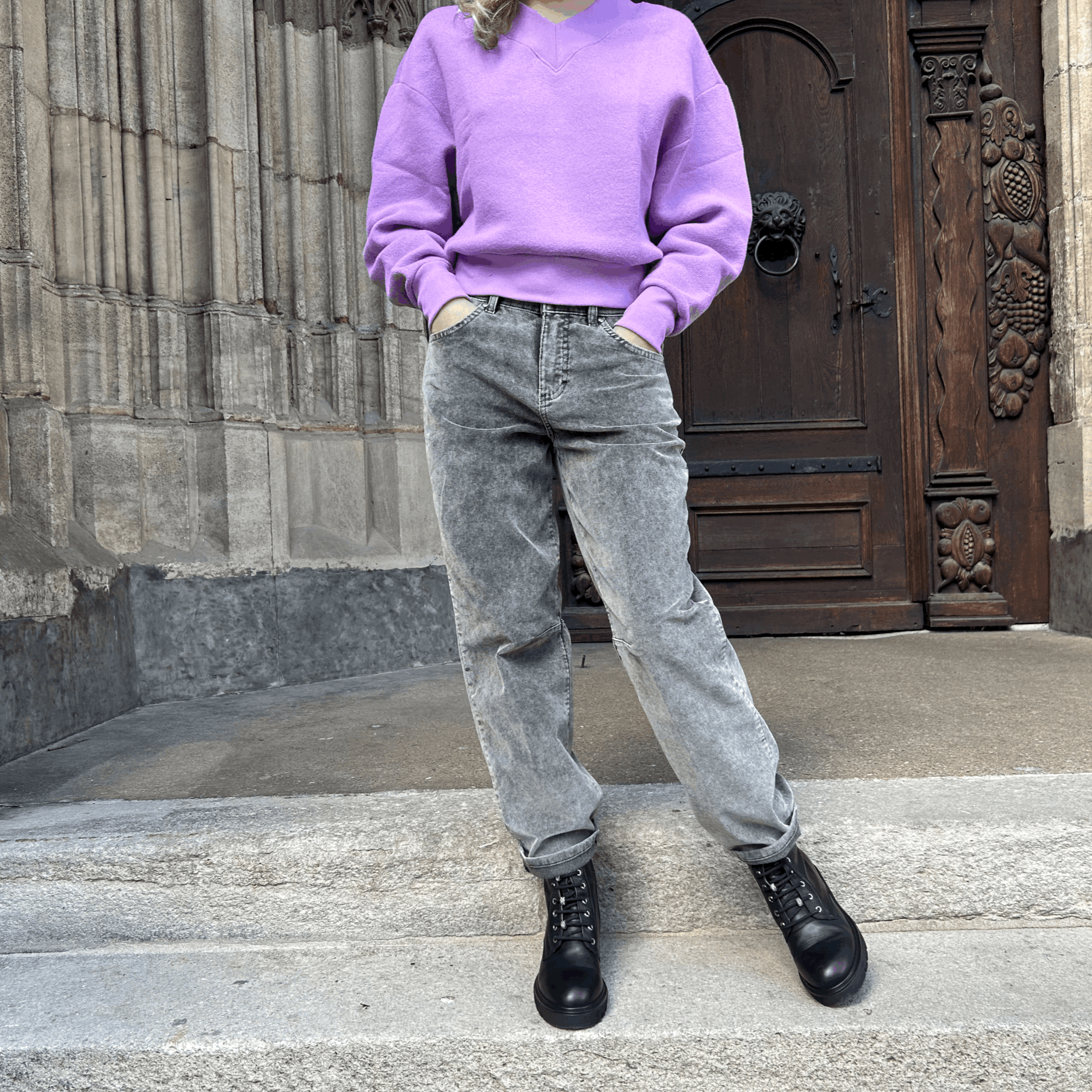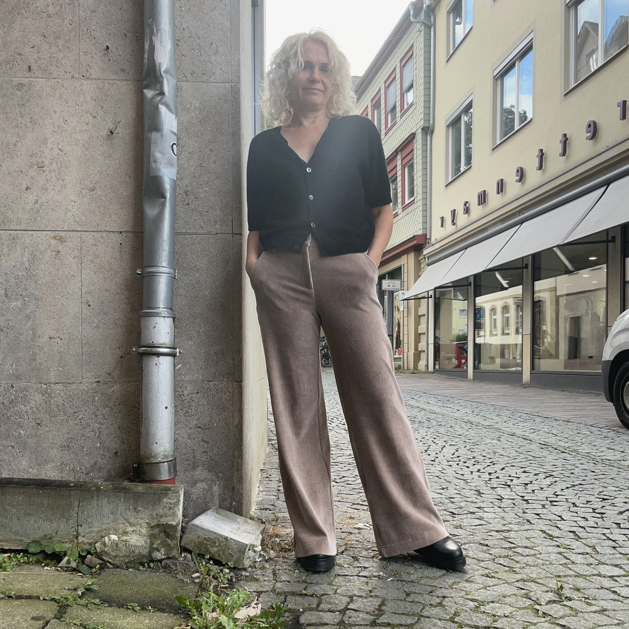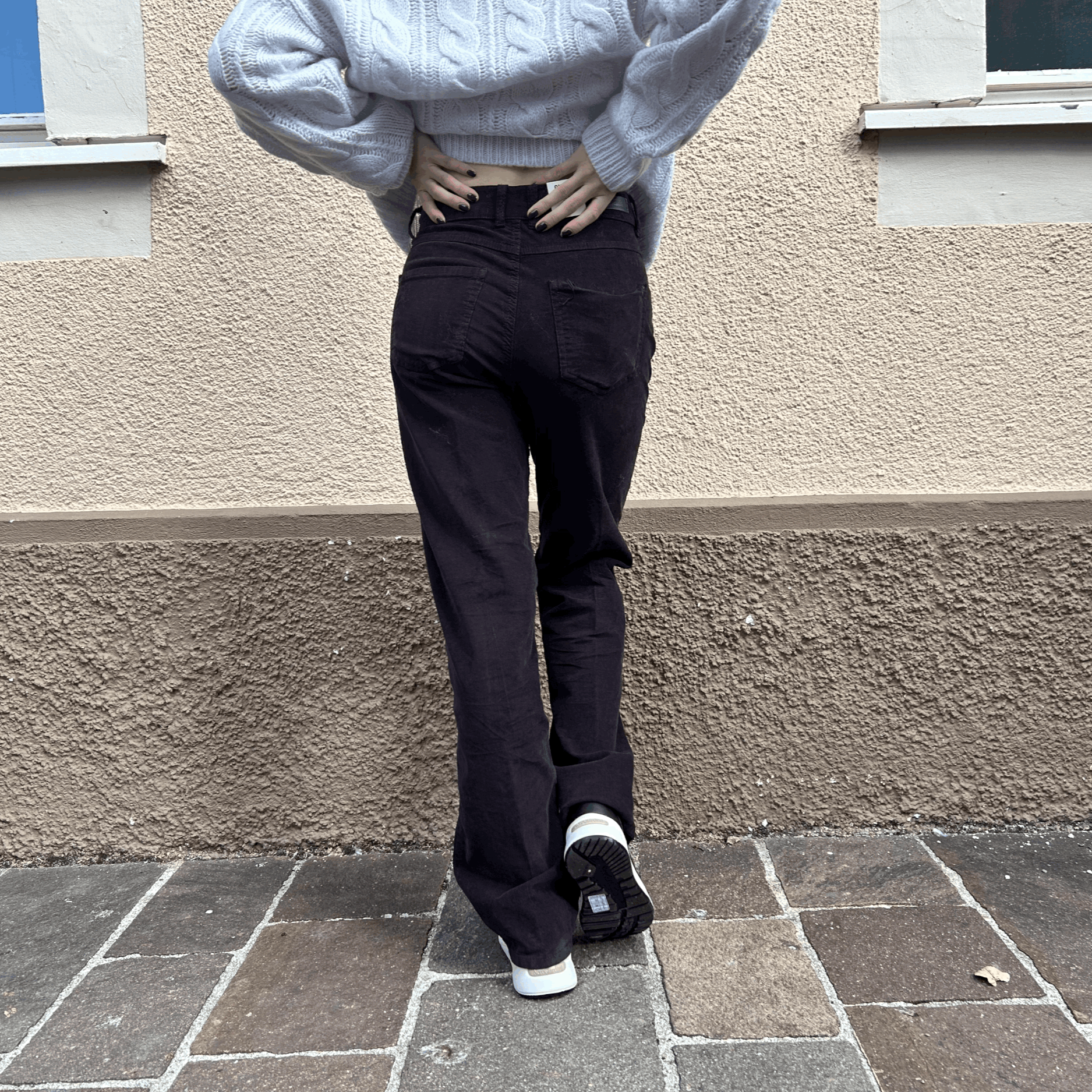 Jeans mit weitem Bein aus angenehmem Stretch-Denim mit Workwear-Taschen. Die Hose hat eine Mid-Waist und liegt eng an der Hüfte an.